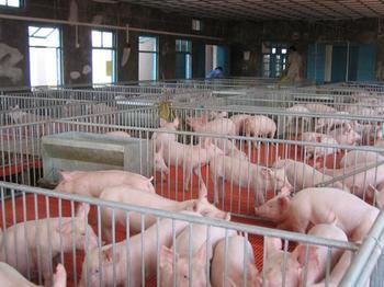保育舍:旨在滿足剛斷奶仔豬的獨特需求。這些仔豬對溫度、通風設(shè)備、熱量和新鮮空氣有特殊的要求。通常情況下,20多個仔豬在一個小格子間里。空間的大小足夠讓仔豬走動,玩耍和鍛煉。每個格子間有自動的供水和供料器,并且配備該階段仔豬使用的專門配制的飼料。一般在保育舍待上7個星期,然后被運到育肥舍。
