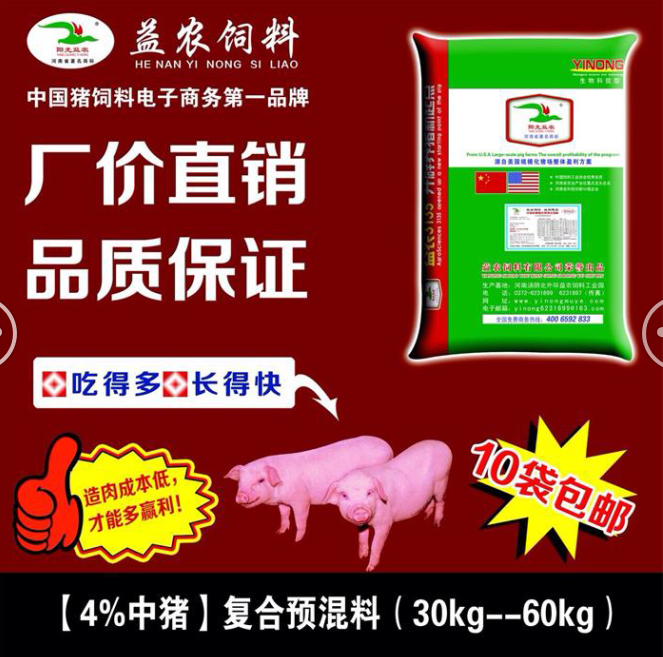 一、特惠產(chǎn)品:4%中豬預(yù)混合飼料“益農(nóng)6612”
